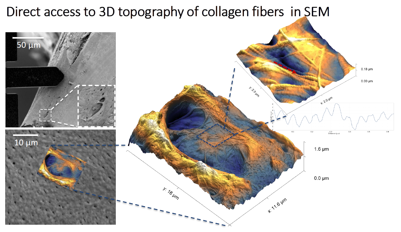 AFSEM™ od GETec umožňuje rozšíření možností vašeho skenovacího elektronového mikroskopu (SEM) o unikátní vlastnosti mikroskopie atomárních sil (AFM) s možností korelativní analýzy dat.