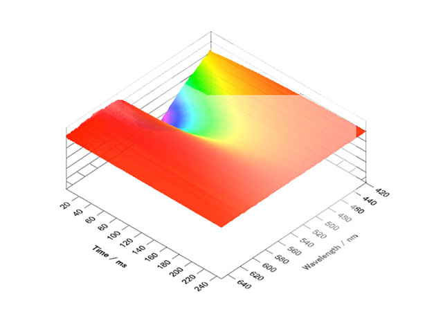 Širokopásmový TA (Transient Absorbtion) spektrometr EOS od společnosti Ultrafast Systems je určen pro měření přechodné absorpce na (sub-)nanosekundové a mikrosekundové časové škále. Ke studiu dynamiky fotoindukovaných procesů používá metodu excitace a sondování (pump-probe).