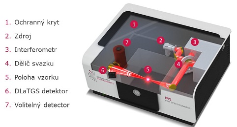 - Možnost rozšíření o modul pro měření fotoluminiscence pomocí Fourierovy transformace (nedisperzní luminiscenční spektroskopie)