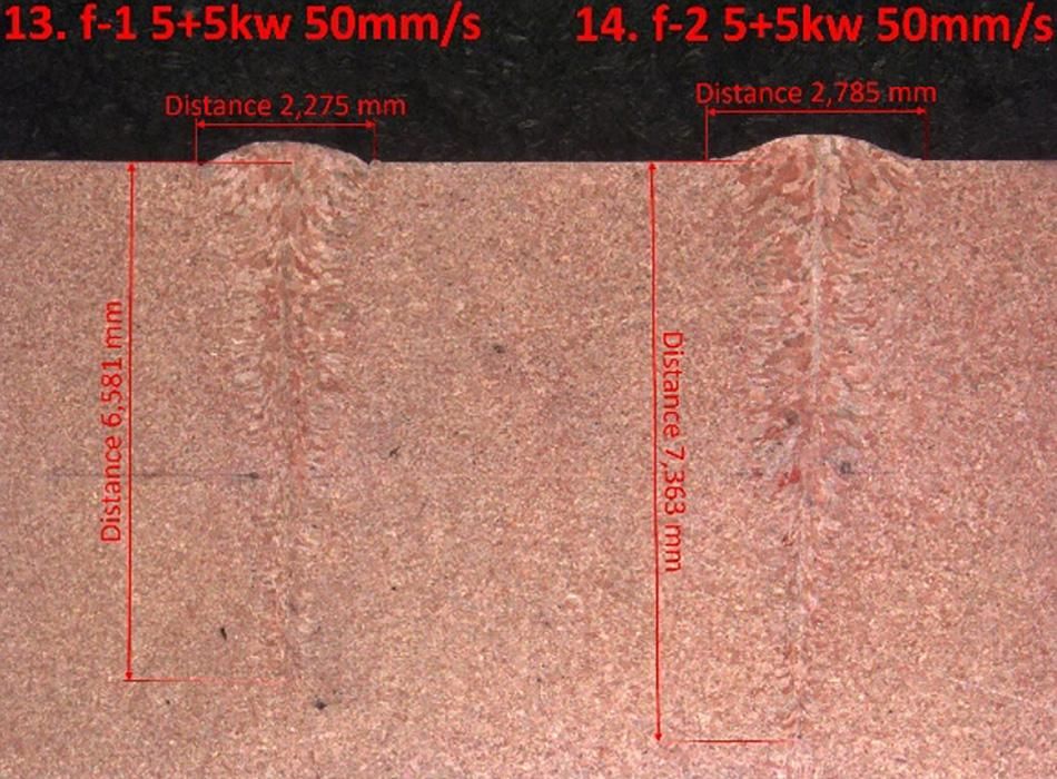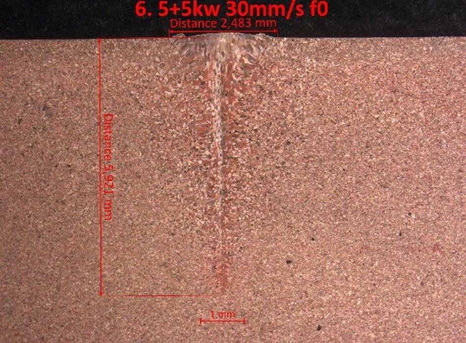 Vysoce kvalitní hluboké svary mědi s úzkým průřezem: nejnovější vláknový laser ARM FL nyní dokáže vytvořit svary hluboké až 7 mm s vynikajícím elektrickým výkonem a minimální pórovitostí a rozstřikem.