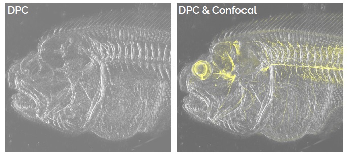 BC43 CF přináší dvě různé možnosti zobrazování v procházejícím světle – brightfield režim pro vizualizaci vývoje větších organismů, jejichž struktury přirozeně poskytují vysoce kontrastní obrazy a diferenciální fázový kontrast (DPC) pro vizualizaci a vykreslení struktury tenčích vzorků a/nebo vzorků s vyšší průhledností.