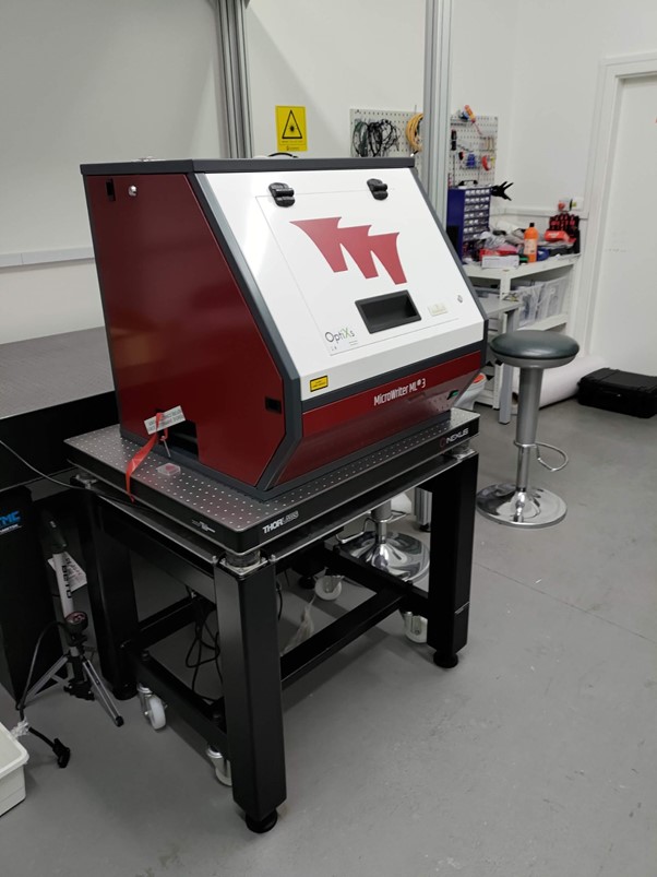 Zdroj osvitu s vlnovou délkou 385 nm a vysokým optickým výkonem umožňuje zápis na běžné g-line a h-line fotorezisty, ale také oblíbený i-line fotorezist SU-8.