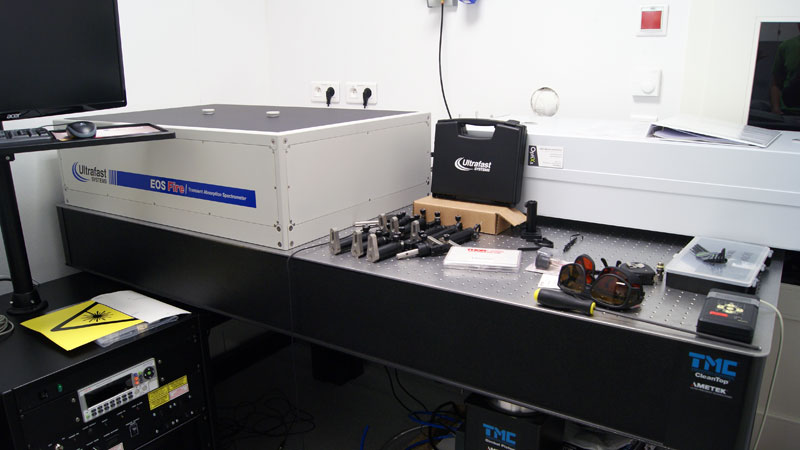 Začátkem května 2017 jsme na Ústavu organické chemie a biochemie nainstalovali širokopásmový pump-probe spektrometr EOS pro měření přechodné absorpce na nanosekundové časové škále. Systém bude využíván ke studiu dynamiky fotoindukovaných procesů v převážně organických materiálech.