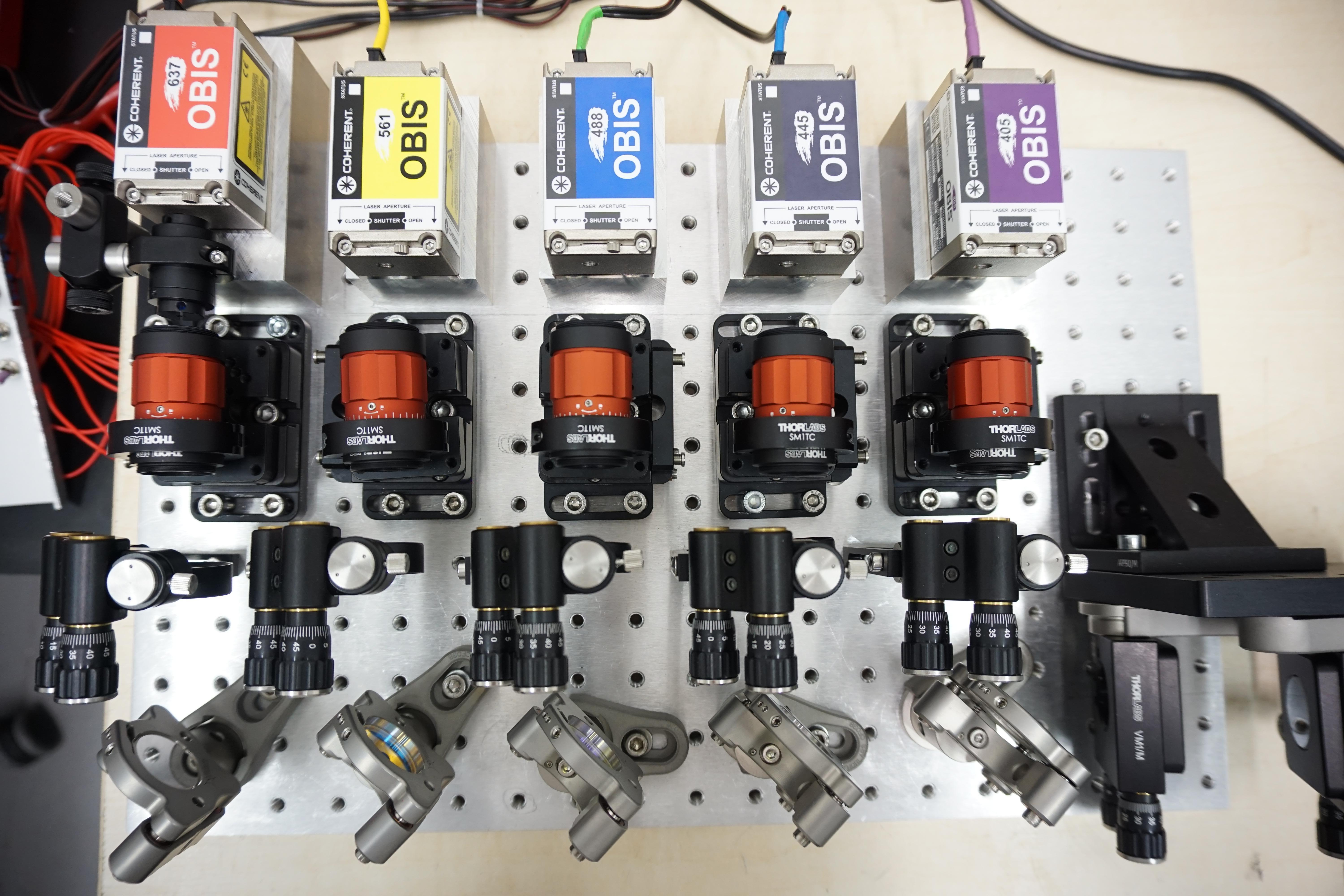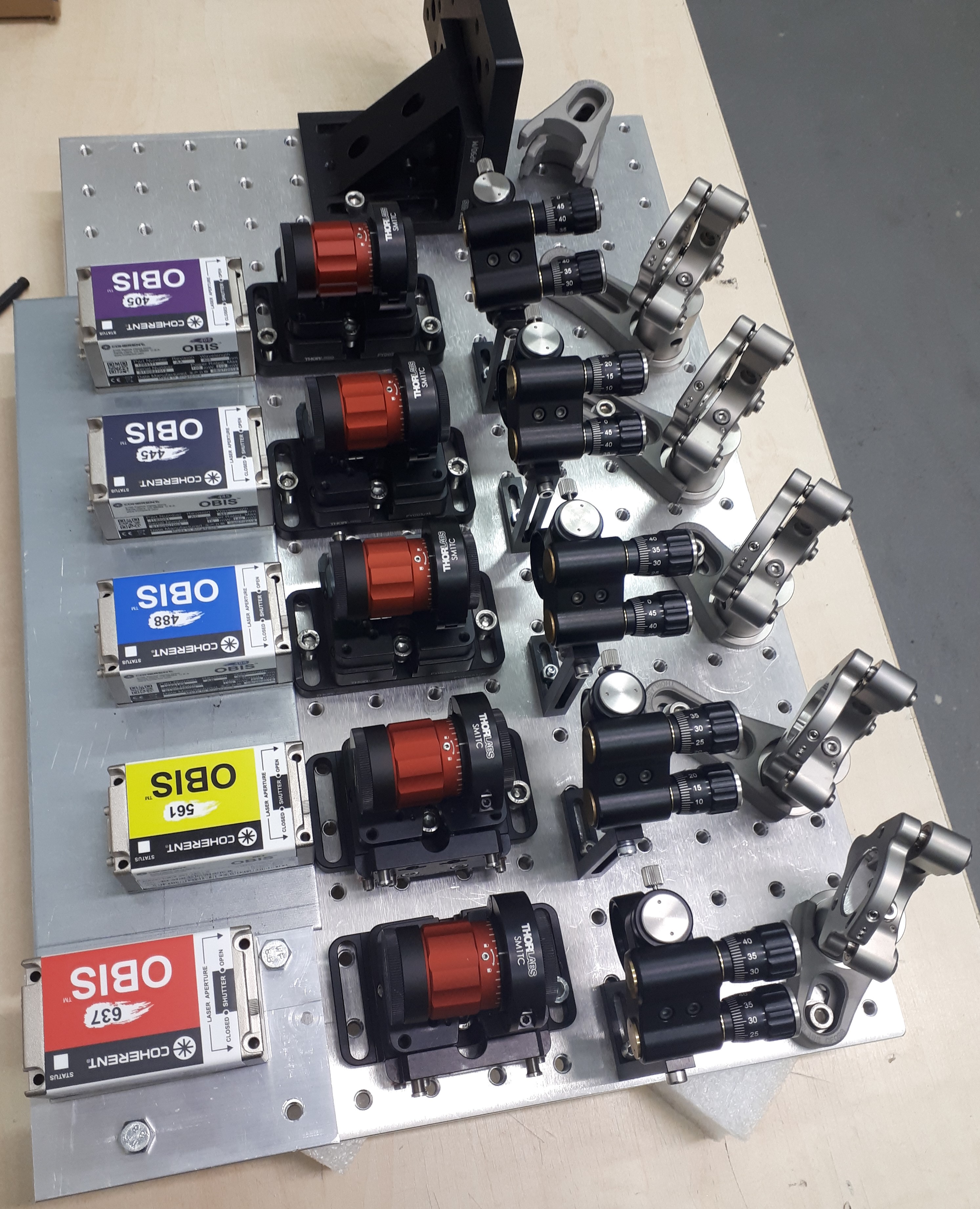 kontinuálních OBIS laserů od firmy Coherent a optickými a optomechanickými komponenty od firem